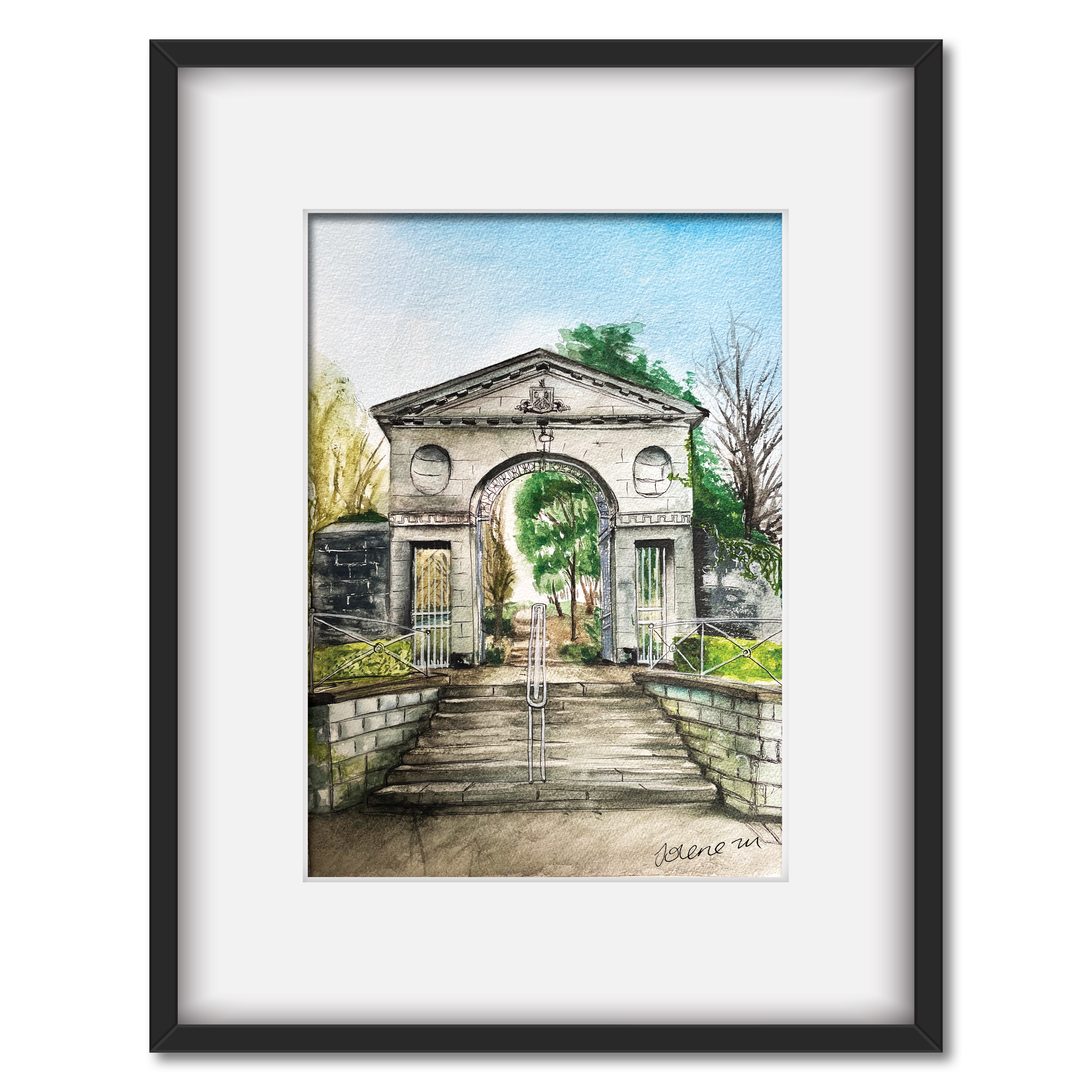Ballsgrove Gate print. Size is 8 x 10″. Comes without mount, but includes backing board – ideal for postage.
