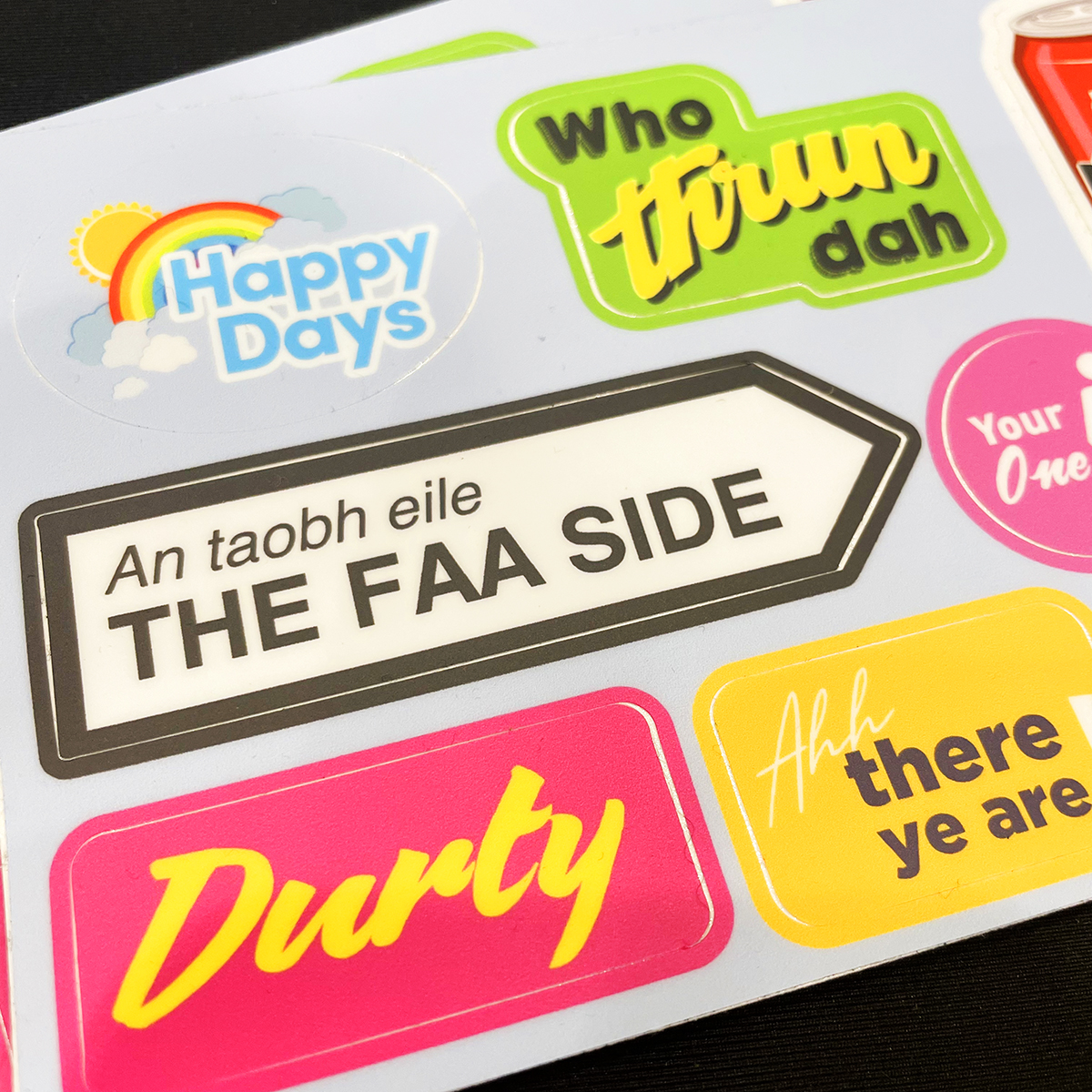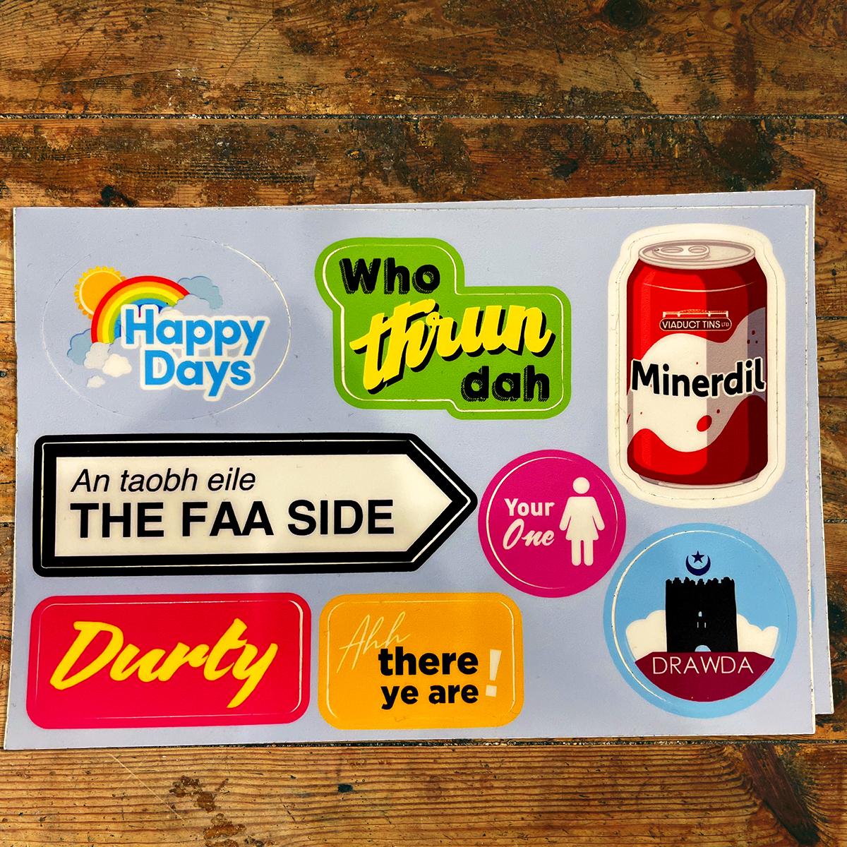 Mixture of sayings and notions that Drogheda people come up with, all on “wan” sheet! Get a whole load of “stickurs” for only €4