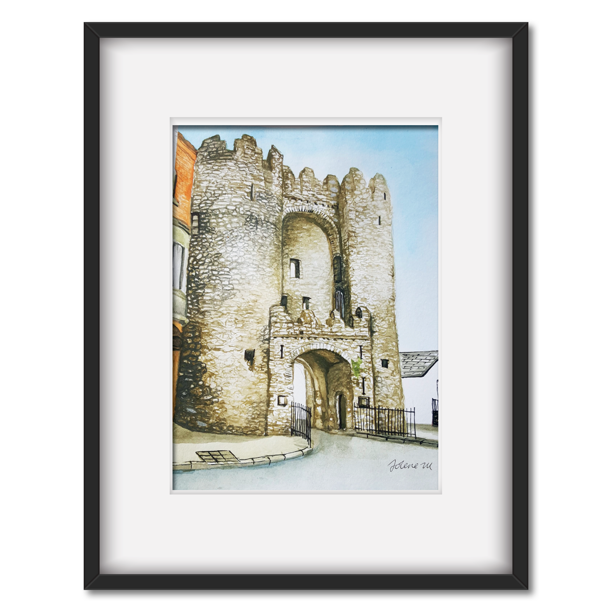 Laurence’s Gate, size is 8 x 10″. Comes without mount, but includes backing board – ideal for postage.